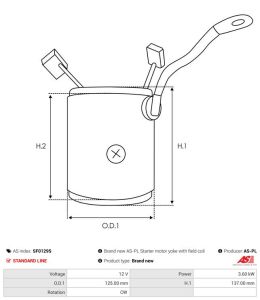 Brand new AS-PL Starter motor yoke with field coil